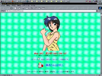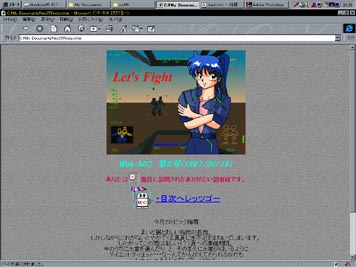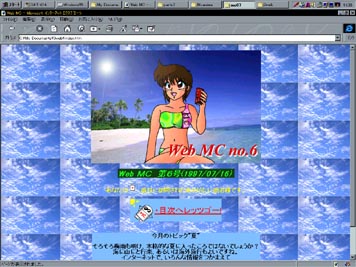 | 月刊Web MC1号 = Part1 = 特集1 「SPARC爆走ミニ四駆レポート」 = Part2 = 特集2 東京へ行こう2 〜有明に行こうHTML版 = Part3 = 愚者の独り言 = Part4 = 超さらしもん「GBポケットモンスター(赤)」 = Part5 = PC購入計画Web版「MZ-1200」 = Part6 = CGコーナー = Part7 = み〜NET紹介 = Part8 = MCの歴史館 = Part9 = 編集後期