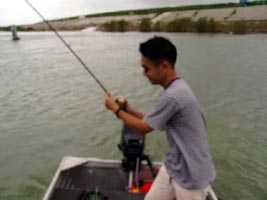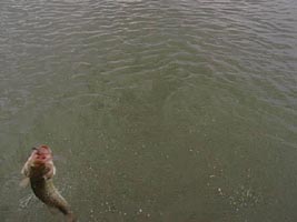 その後も、数匹のBassをヒット!しかし、やはり手元でばらすこと数回、うまく釣りあげる事が